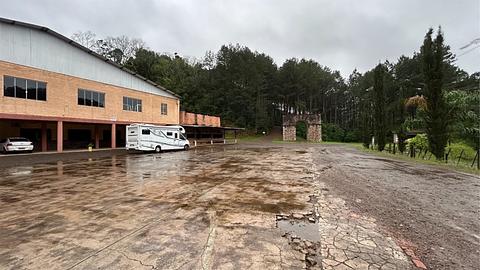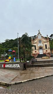 I spent the night in the church's courtyard. It was a flat, well-lit place with electricity and water, very peaceful, with welcoming Italian colonists. Cell phone signal was weak. -- Passei a noite no pátio de festividades da igreja. Local plano, iluminado, com luz e água, muito tranquilo com moradores de colonização italiana receptivos. Celular sinal Vivo fraco.