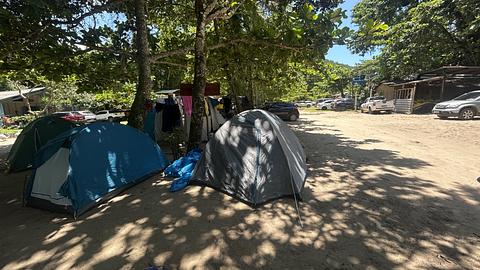 Ficamos aqui por dois dias. Estacionamento ao lado do camping A estrada é bem ruim e não chega qualquer veículo principalmente com chuva. Tem um ponto de agua, banheiros e ducha fria.