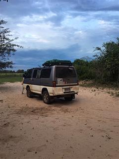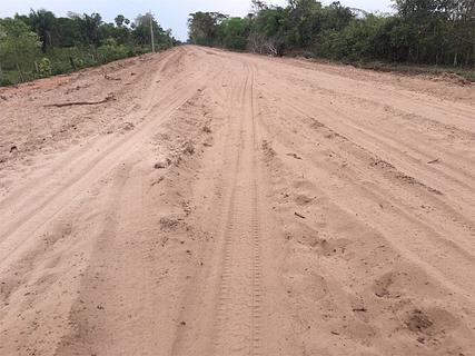 Grassy place along a rare used sandroad. Perfect place to observe parrots, Tucans and many other birds. We stayed under a tree with 5 Araras Azul! Shady place in the evening, horses grazing around. Short deep sand passage to get here. We loved this place...